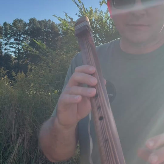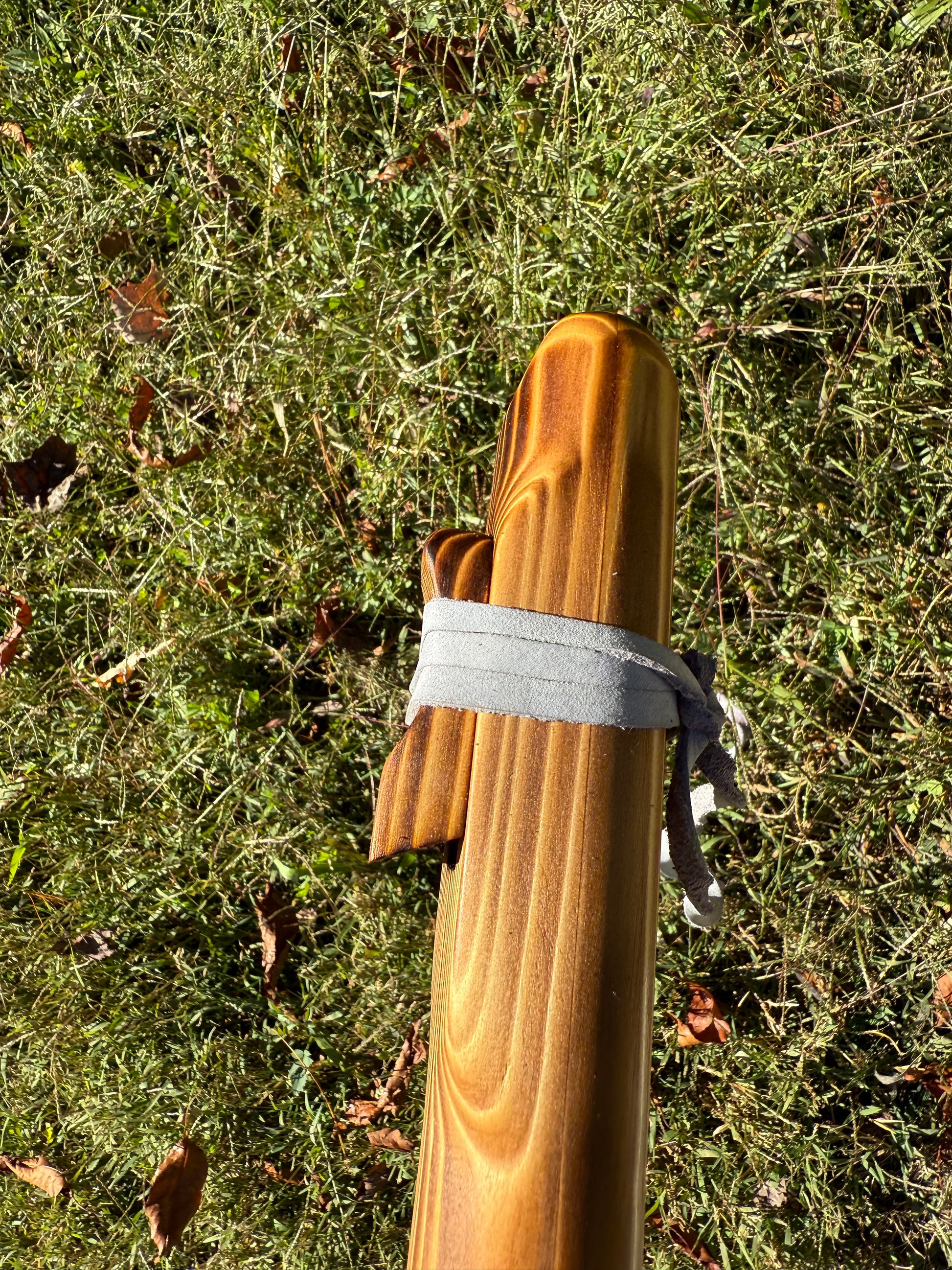The body measures 21 inches in length with a 1-inch bore, finger holes — ranging from 3/16” to 3/8” — offer a smooth, natural feel beneath your fingertips. Every curve and carving is done with care, allowing the cedar to sing with both clarity and soul.
